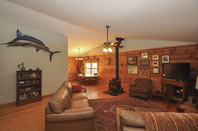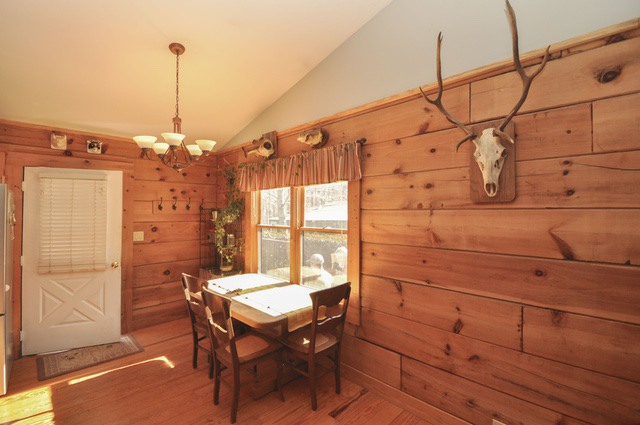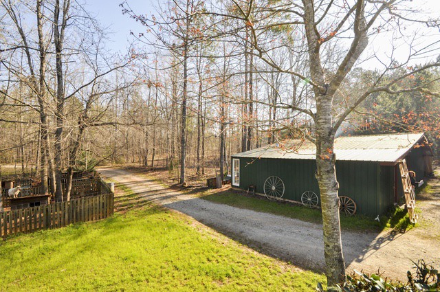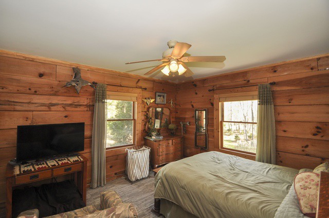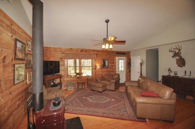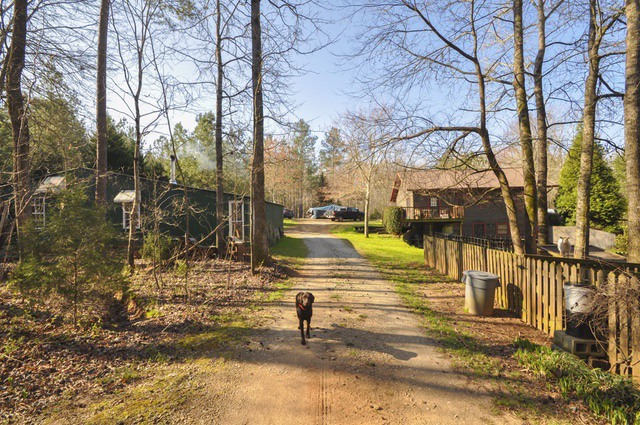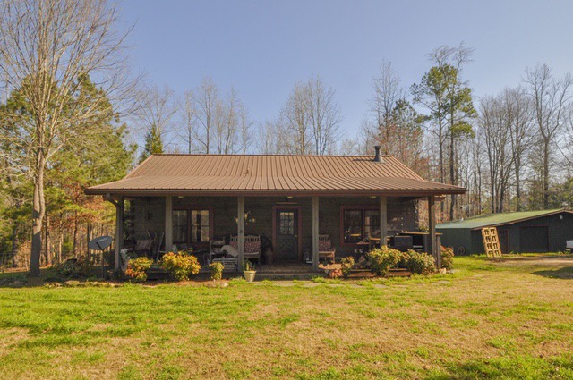 The cabin has pine flooring, a vaulted great room, two bedrooms on the main level, plus a master suite and additional bedroom in the finished basement. The property features a shared lake, creek with shoals and a perfect garden spot! A large shop building with covered parking area, plus electric for all your projects is included as well. Perfect for country living just a few minutes from town or perfect for a second home for a weekend getaway spot!
