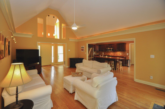 This home offers one level living with an open floor plan and split bedroom arrangement. There is a great room with fireplace that is open to the kitchen and a formal dining room. A huge screened porch overlooks the private back yard and deck/grilling area.