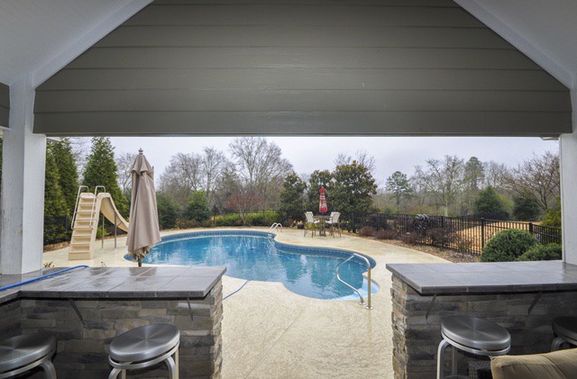 This recently updated, custom built home sits on 4.76 acres, offering convenience AND privacy! The home features a great floor plan for both relaxing and entertaining, offering a great room w/ fireplace, formal dining room, sun room, a second family room and home gym area. The kitchen has all new appliances, two sinks and ample countertop space, a breakfast nook and also a cozy wood stove! The owner’s suite and two additional bedrooms are on the main level, plus there is a 4th bedroom and full bath upstairs. The master bath is brand new and offers a soaking tub, gorgeous stone shower, custom cabinetry, plus it has convenient access to the laundry room! The oversized, detached garage is also new and offers a full finished bonus room upstairs– perfect for a home office or media space! The outdoor spaces of the home include professional landscaping, a screened porch and patio areas, a fire pit, outdoor kitchen with grill, hot tub, pool and a pool house with covered entertaining space and a full bath. There is fencing and a storage building for your outdoor toys, including parking for an RV or camper!